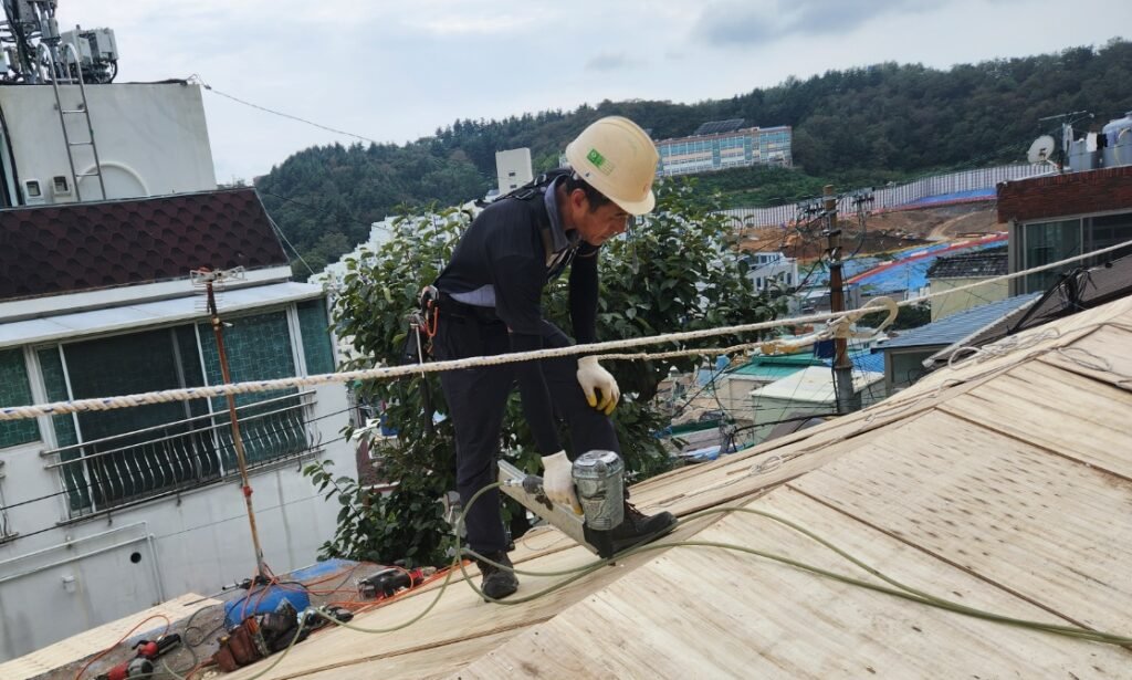 • 굴뚝, 물골, 처마 끝 등 취약 부위에 전용 후레싱 자재를 사용하여 정밀 마감